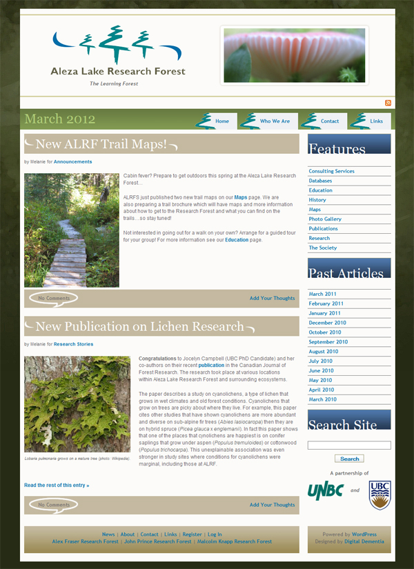 We created a website that takes its inspiration from their logo. We repeated elements and colours from their logo to create a coherent and attractive website. The content management system allows the staff at Aleza Lake Research Forest to easily update and maintain their website without reliance on any third parties, thus saving them valuable time and money.