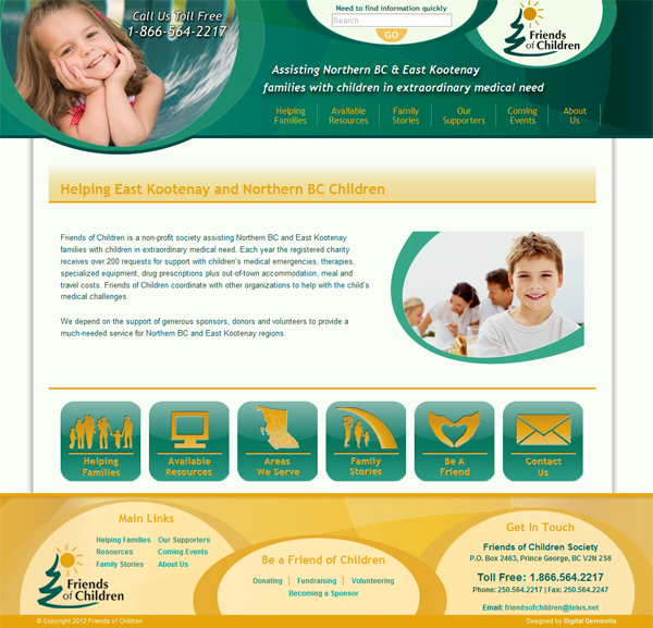 We created a website that takes its inspiration from their promotional material. We created unique and appealing design that helps parents of sick children find the information they need quickly and efficiently using large, easily seen buttons. The content management system allows the staff to update and maintain their site easily and reduce their reliance on consultants. We also identified several web hosting providers to cut their web hosting costs.